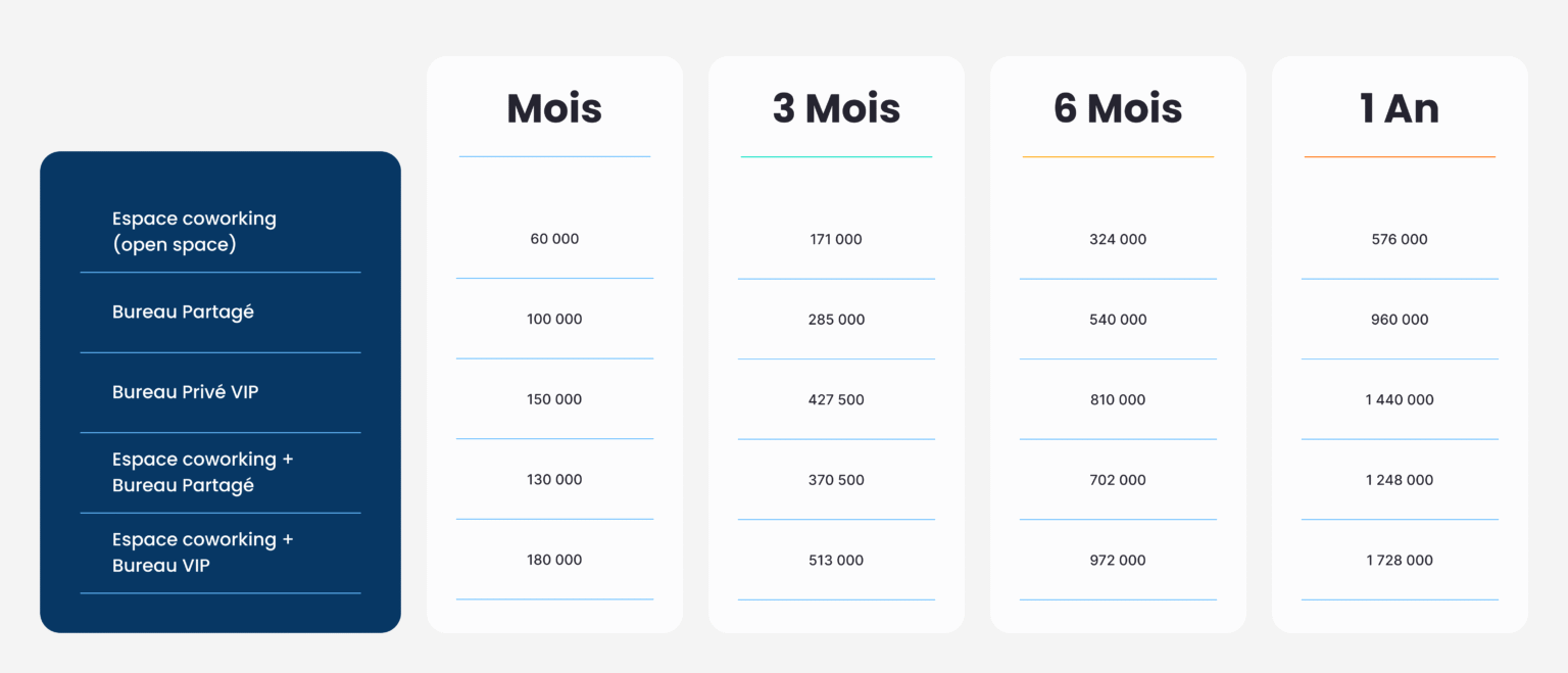 Nous mettons à votre dispositions des espaces de travail modernes et collaboratifs pour favoriser la productivité, l’innovation et le partage d’expériences.